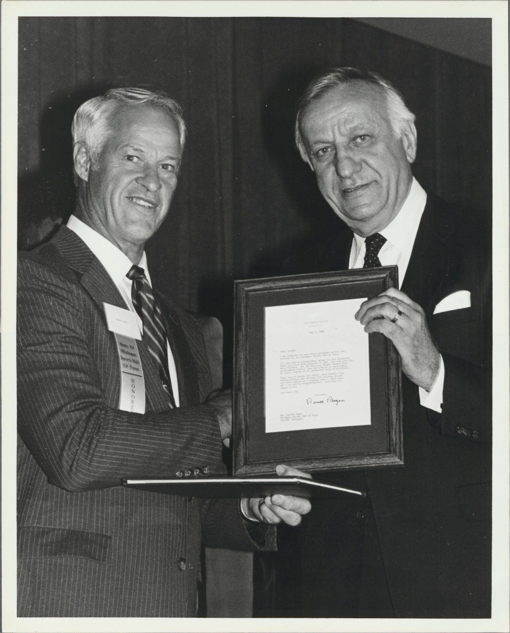 The Michigan Sports Hall of Fame Archives holds important items related to the history of the institution and its inductees from its establishment in 1955 to the present. From important artifacts and correspondence representing the members, to the preservation of documents that represent the organization itself, the Archives are an important part of the Michigan Sports Hall of Fame. The Archives, managed by our heritage partner Heritage Werks, are located in their secure, state-of-the-art facility. Environmental controls and a disaster preparedness plan ensure the collection is protected for generations to come.